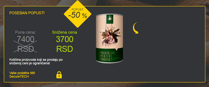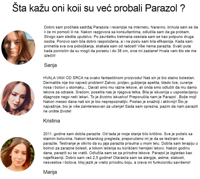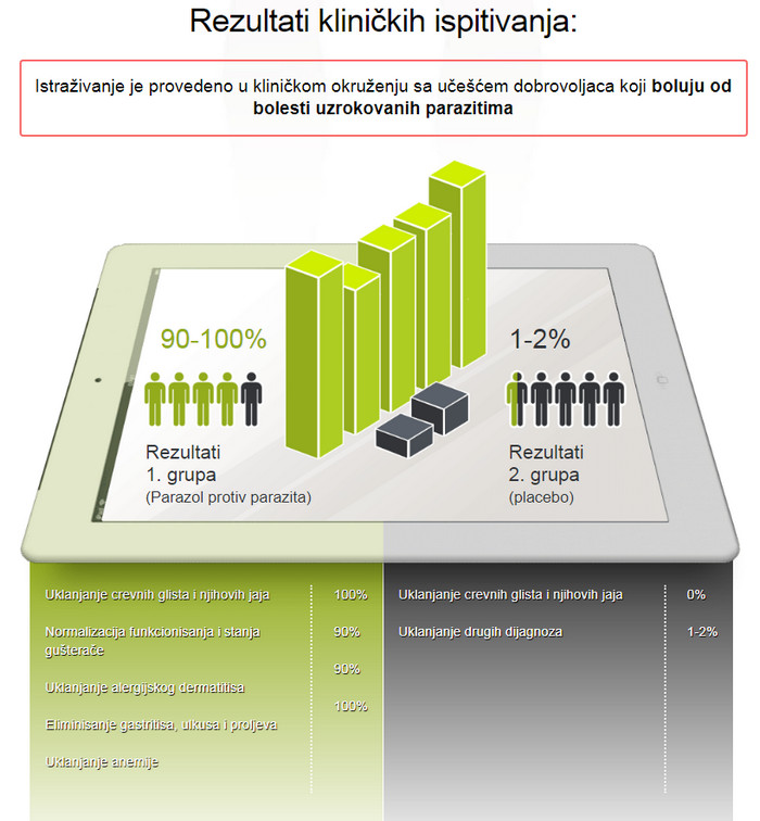 Inovativni razvoj naučnika u samo jednom toku primjene sposoban je pobijediti sve vrste glista koje žive u ljudskom tijelu. Parazol u potpunosti očisti organe od parazita i obnavlja tijelo u kratkom vremenu. Također, ovaj biljni lijek pomoći će da se riješite ostalih parazita, glavna stvar je da provedete puni tijek liječenja i pridržavate se preporuka za upotrebu.